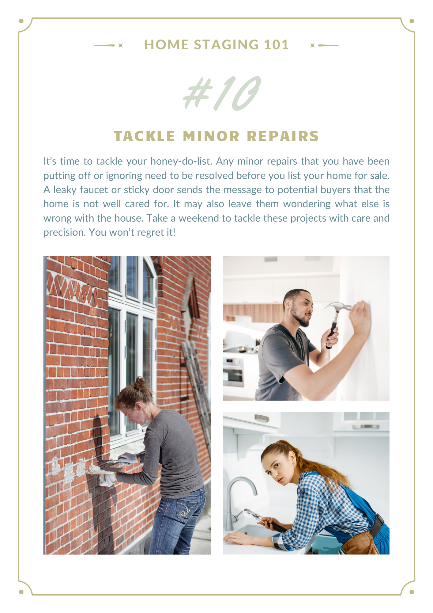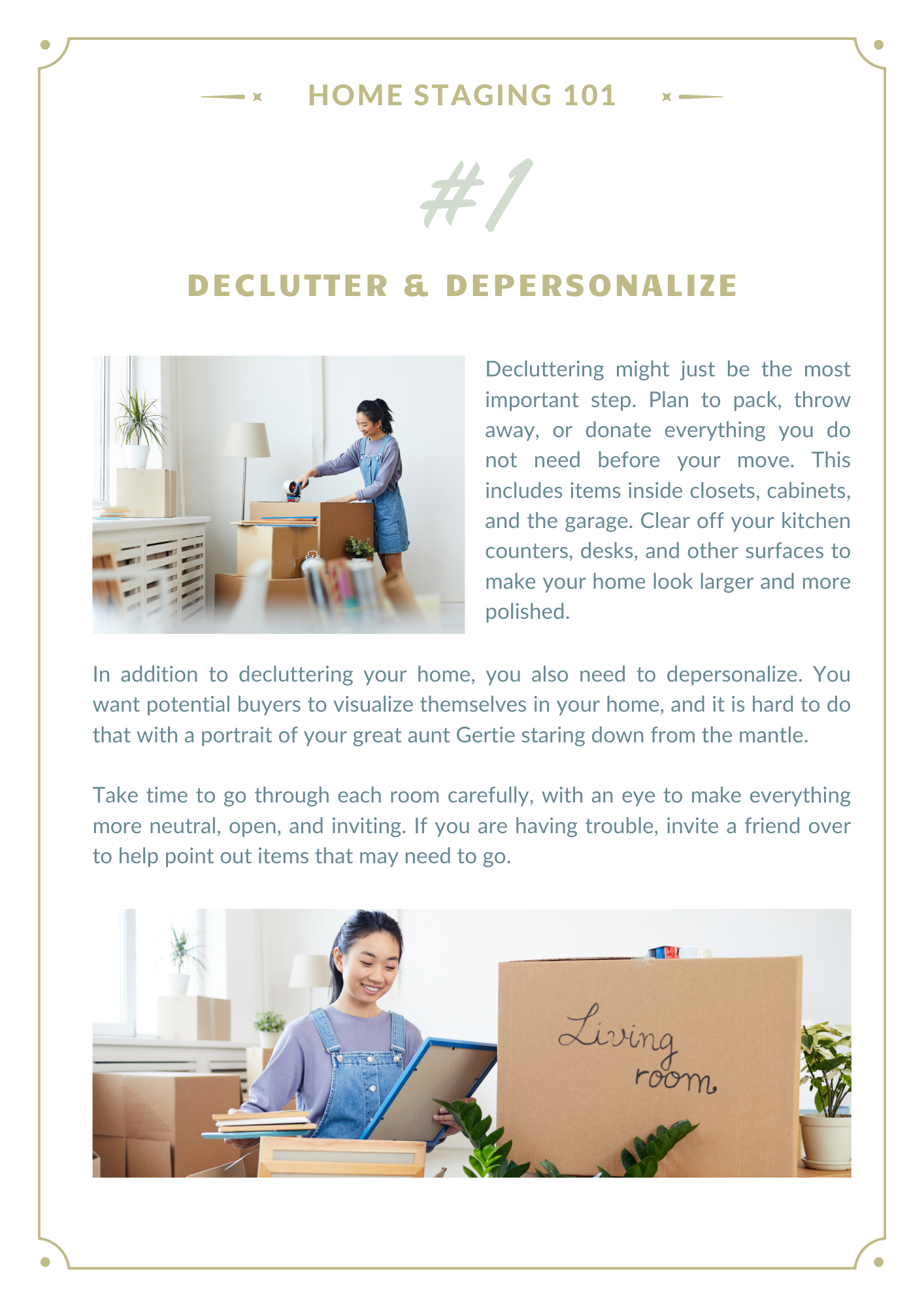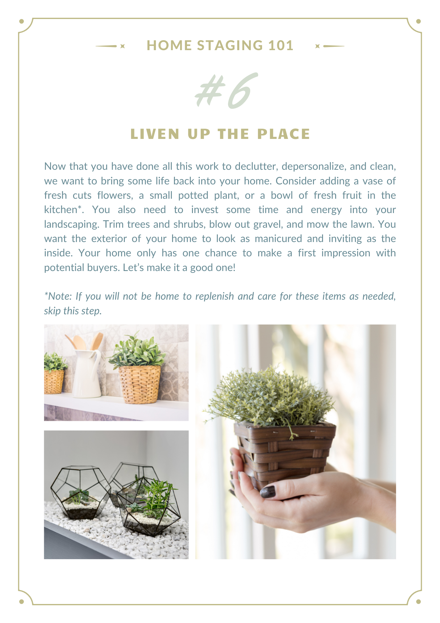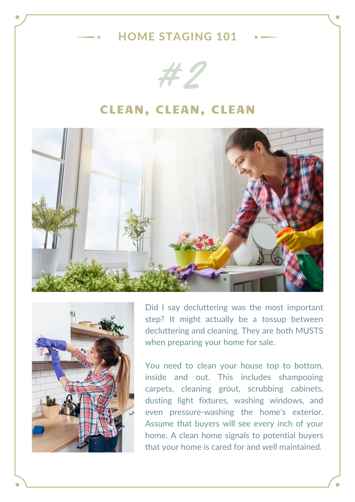 Getting ready to sell your home and move on to your next adventure can be exciting, but it can also be daunting. Thinking about ALL the things needed to get your home in “show ready” condition can be enough to make your head spin!