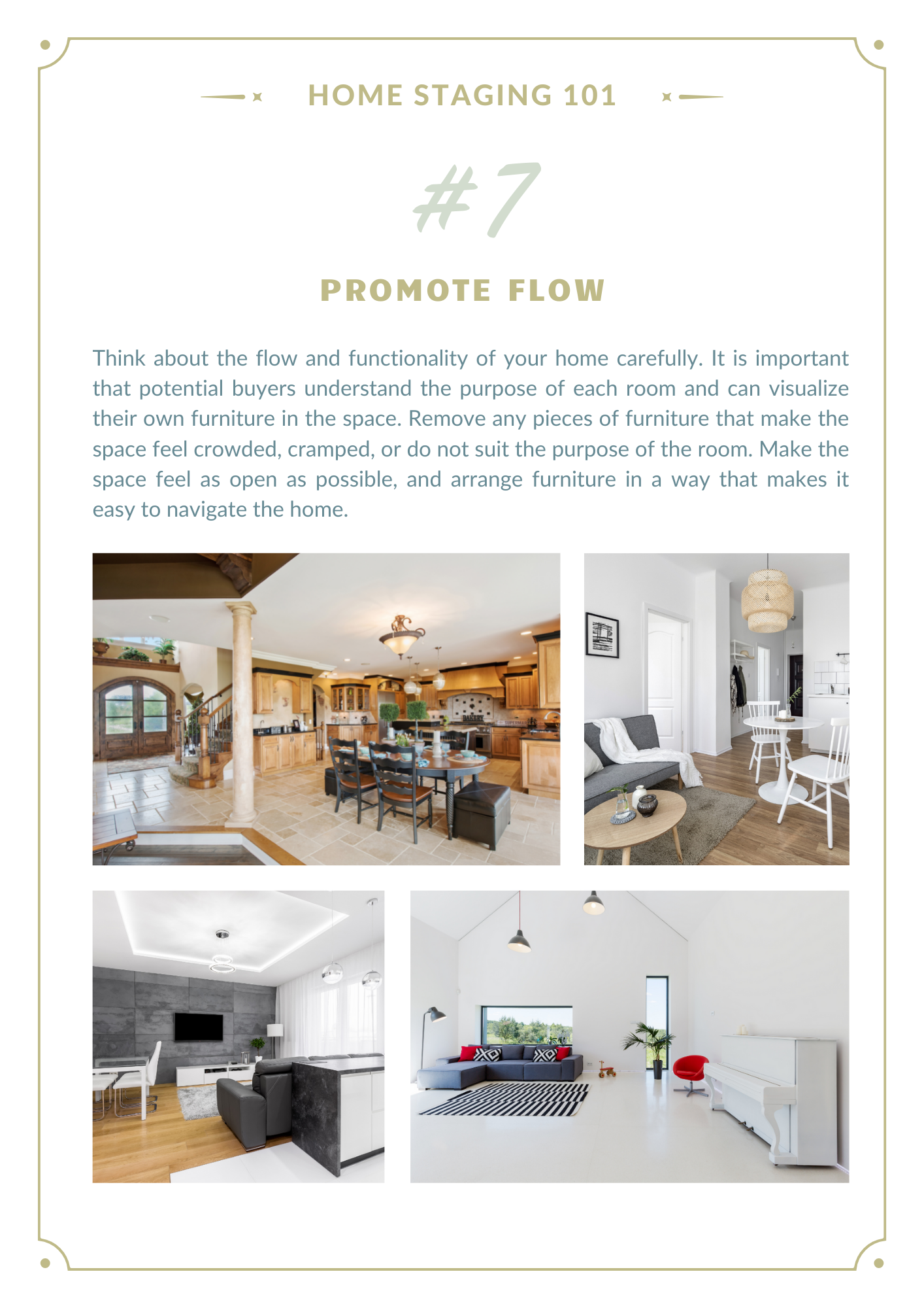 - Staging the living room was found to be very important for buyers (46%), followed by staging the master bedroom (43%), and staging the kitchen (35%).